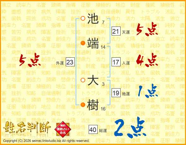 池端大樹さんの天運は21画の5点!