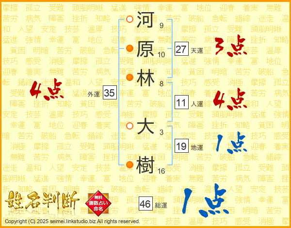 河原林大樹さんの人運は11画の4点!