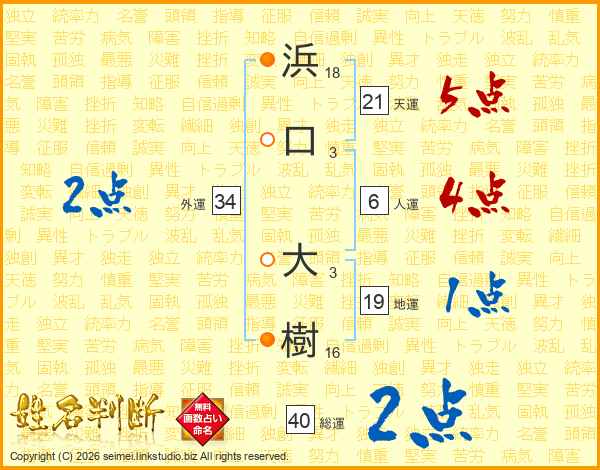 浜口大樹さんの総運は40画の2点!