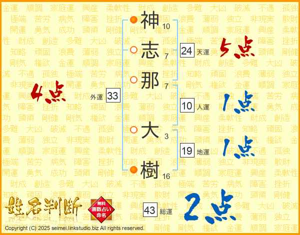 神志那大樹さんの外運は33画の4点!