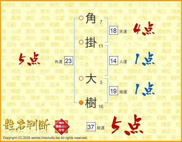 角掛大樹さんの総運は37画の5点!