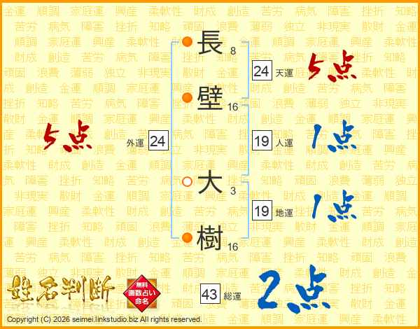 長壁大樹さんの天運は24画の5点!