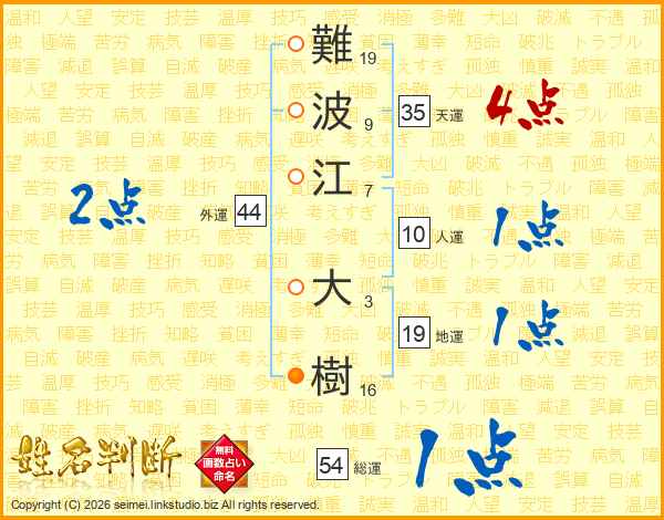 難波江大樹さんの天運は35画の4点!