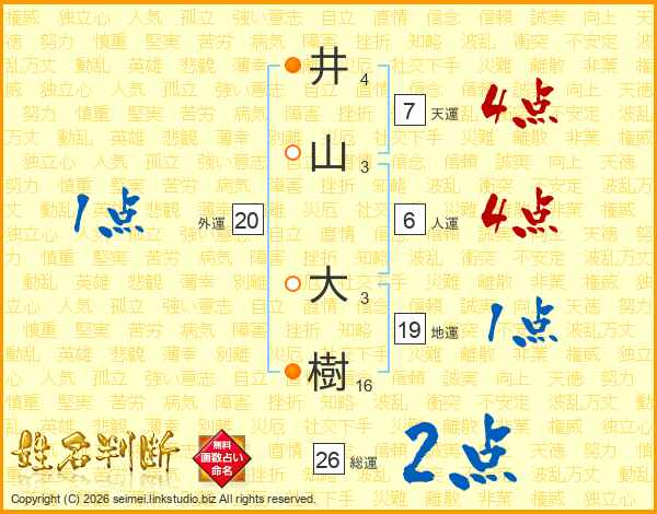 井山大樹さんの総運は26画の2点!