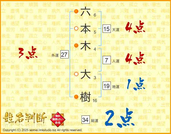 六本木大樹さんの総運は34画の2点!