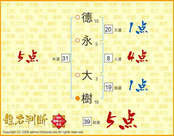 德永大樹さんの総運は39画の5点!