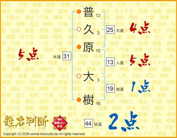 普久原大樹さんの天運は25画の4点!