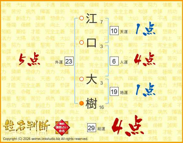 江口大樹さんの総運は29画の4点!