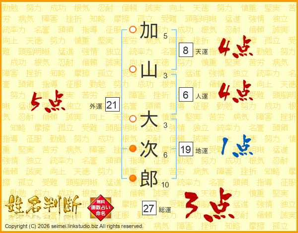 加山大次郎さんの総運は27画の3点!
