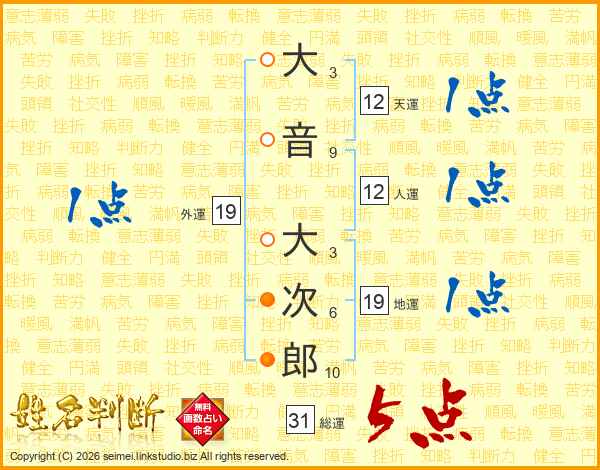 大音大次郎さんの総運は31画の5点!