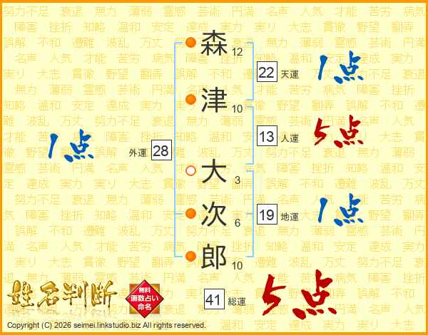 森津大次郎さんの総運は41画の5点!