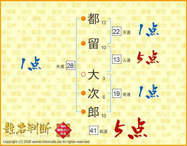 都留大次郎さんの総運は41画の5点!