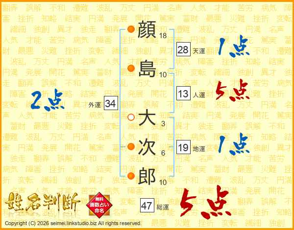 顔島大次郎さんの総運は47画の5点!