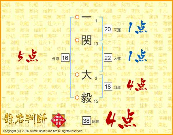 一関大毅さんの総運は38画の4点!