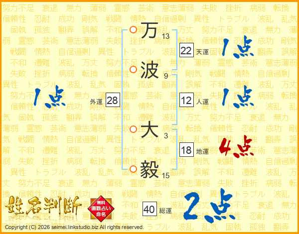 万波大毅さんの天運は22画の1点!