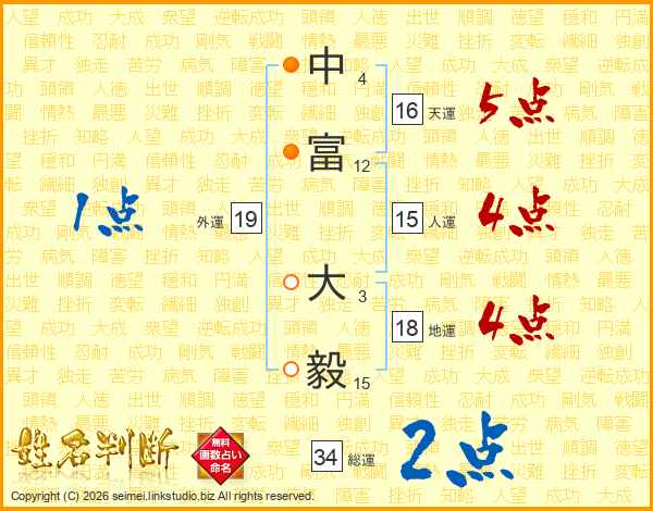 中(4画)富(12画) 大(3画)毅(15画)
