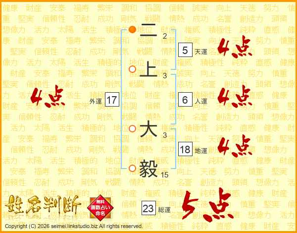 二上大毅さんの総運は23画の5点!