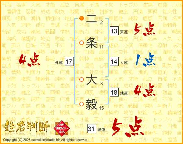 二条大毅さんの総運は31画の5点!