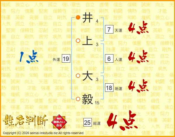 井上大毅さんの総運は25画の4点!