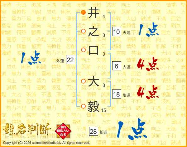 井(4画)之(3画)口(3画) 大(3画)毅(15画)