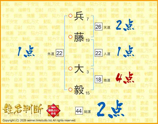 兵(7画)藤(19画) 大(3画)毅(15画)