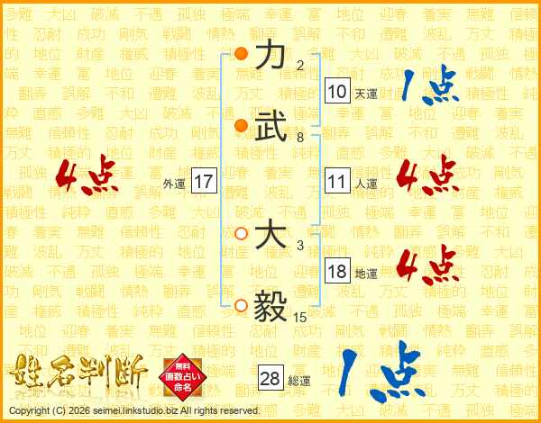 力武大毅さんの総運は28画の1点!