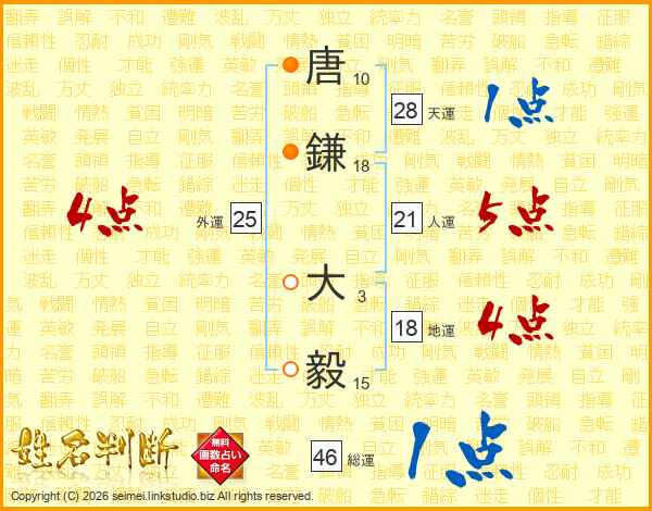 唐鎌大毅さんの総運は46画の1点!