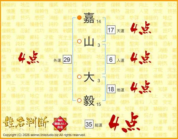 嘉山大毅さんの外運は29画の4点!
