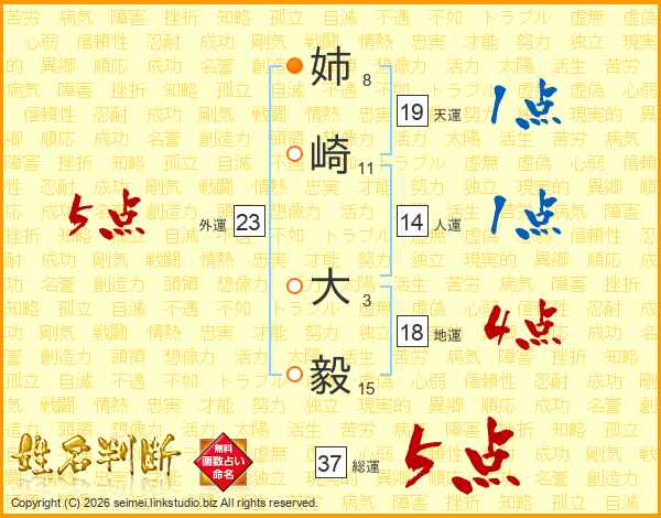 姉崎大毅さんの総運は37画の5点!