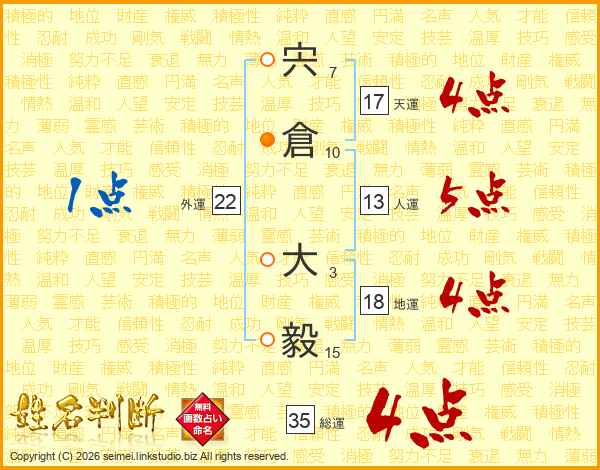 宍倉大毅さんの総運は35画の4点!
