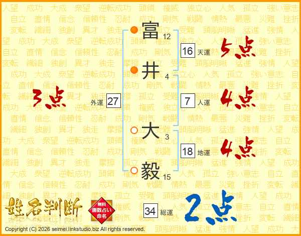 富(12画)井(4画) 大(3画)毅(15画)