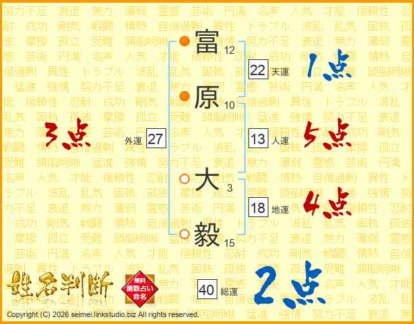 富原大毅さんの天運は22画の1点!