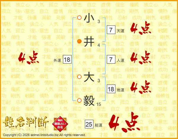 小井大毅さんの総運は25画の4点!