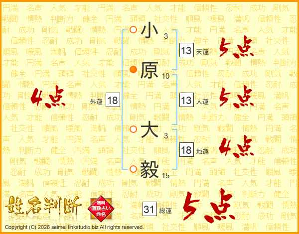 小原大毅さんの総運は31画の5点!