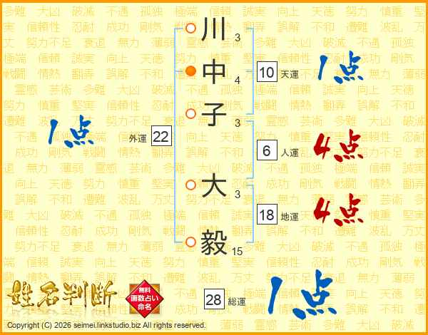 川中子大毅さんの総運は28画の1点!