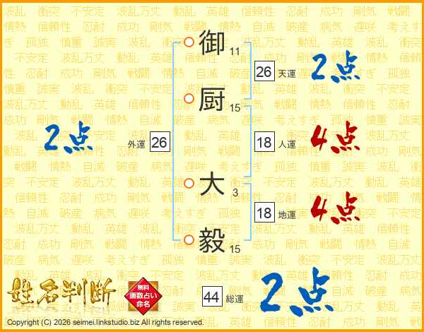 御厨大毅さんの総運は44画の2点!