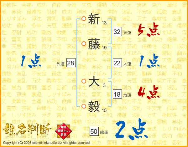 新藤大毅さんの天運は32画の5点!
