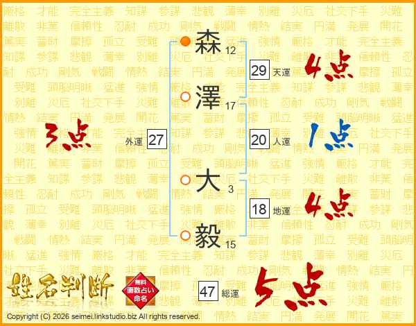 森澤大毅さんの総運は47画の5点!