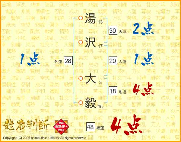 湯沢大毅さんの総運は48画の4点!