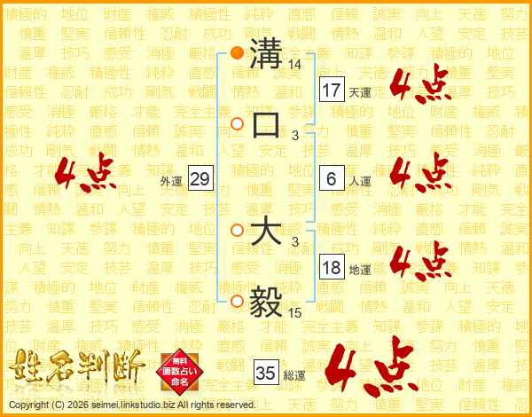 溝口大毅さんの天運は17画の4点!
