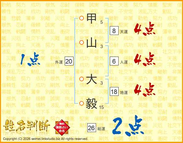 甲山大毅さんの総運は26画の2点!
