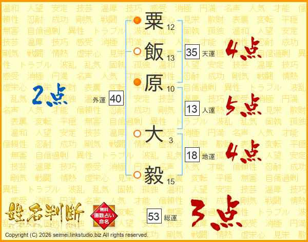 粟飯原大毅さんの人運は13画の5点!