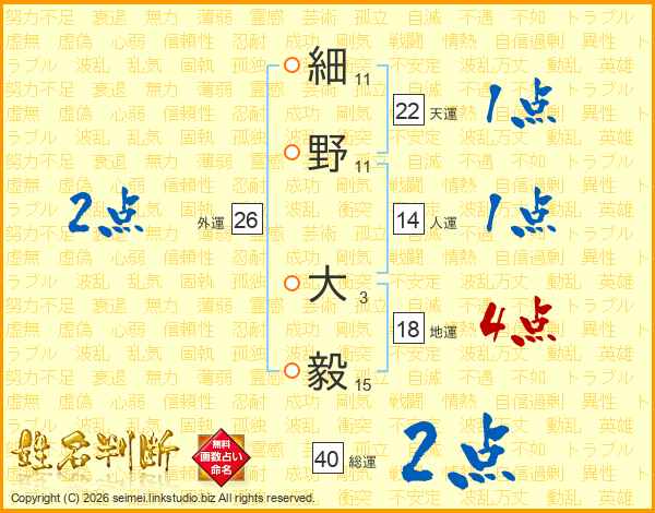 細野大毅さんの天運は22画の1点!