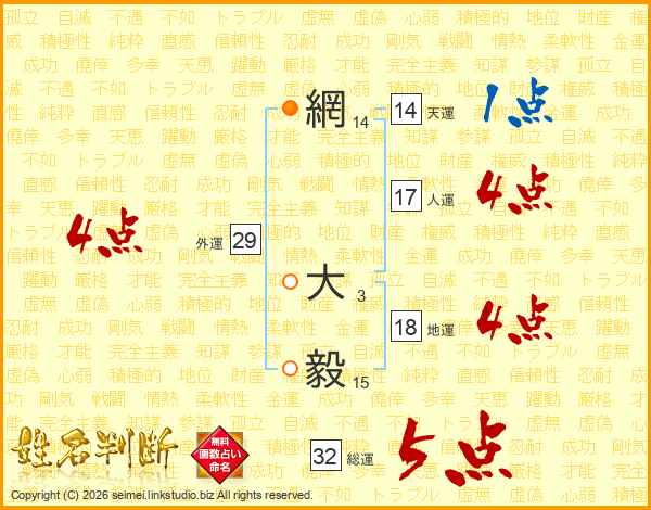網大毅さんの総運は32画の5点!