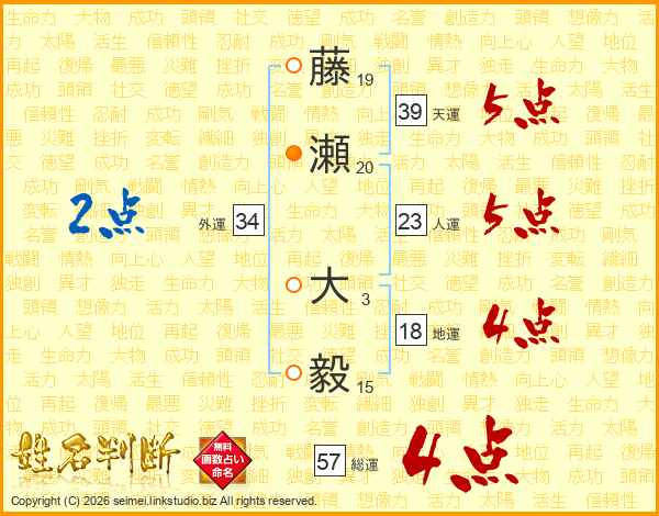 藤瀬大毅さんの総運は57画の4点!