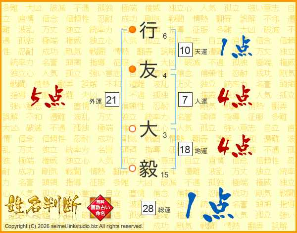 行友大毅さんの総運は28画の1点!