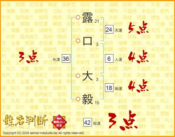 露口大毅さんの総運は42画の3点!