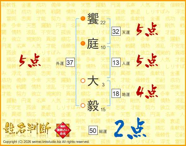 饗庭大毅さんの天運は32画の5点!