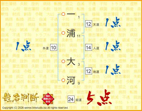 一浦大河さんの総運は24画の5点!
