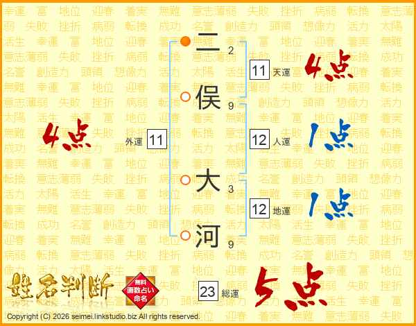 二俣大河さんの天運は11画の4点!